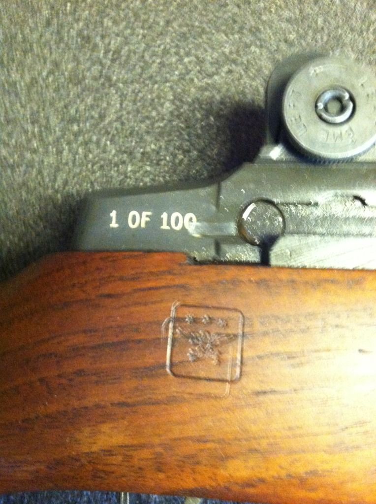 I'm looking for a little information for a friend (I told him to join the forum here) and his M1A. On the right rear side of the receiver is stamped "1 of 100". I have never seen or heard of anything like this and was wondering if anyone else here has any info.