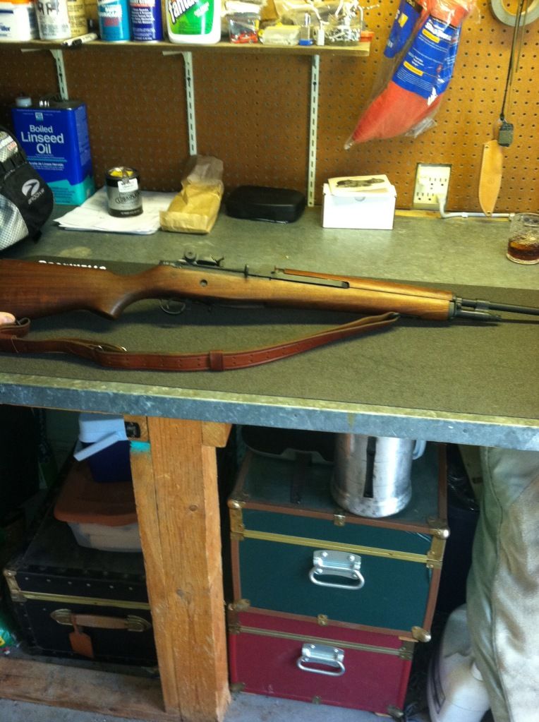 This is his M1A. Absolutely beautiful with a wood forearm guard.